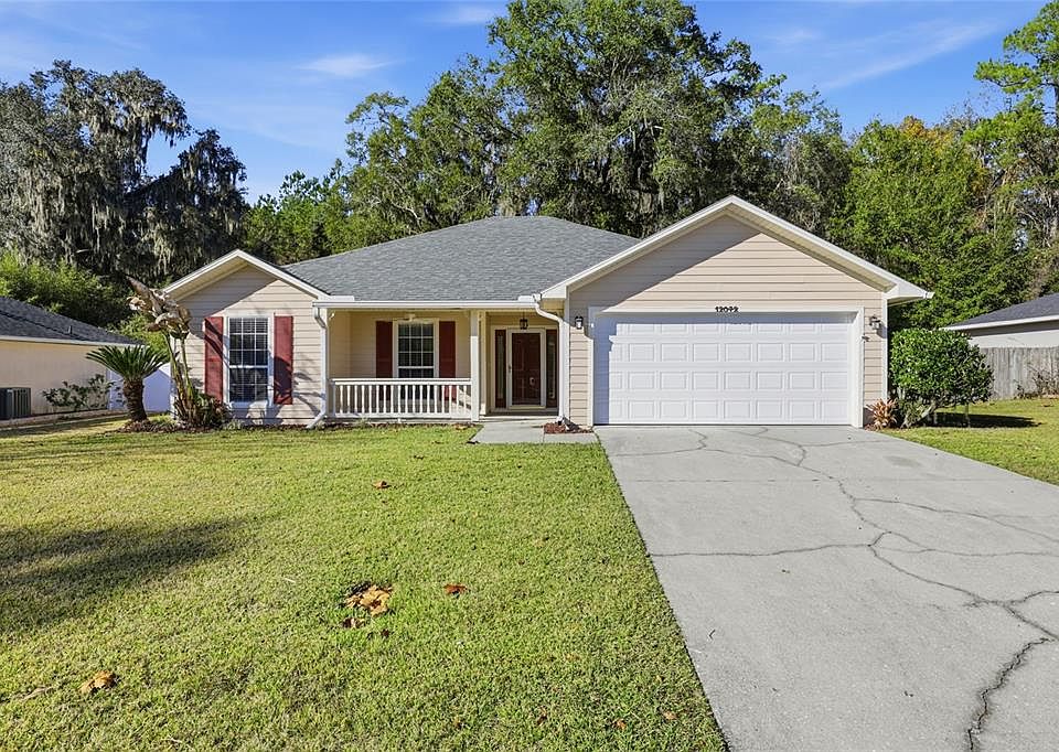 This beautiful 3/2 in the gated community of Turkey Creek is now available! As you enter, the inviting fireplace is placed in the corner of the grand living room. This leads into the kitchen featuring matching appliances and a breakfast nook. Brand new French doors lead out to the private, fenced backyard with a shed. The spit floorplan gives everyone a feeling of ample space and privacy. A large, functional laundry room with washer and dryer. In the primary bedroom, there's a large walk-in closet and double sink vanity. Enjoy being tucked away in a quiet section of the neighborhood. Perfectly situated in between Gainesville and Alachua. Bring your golf cart!
