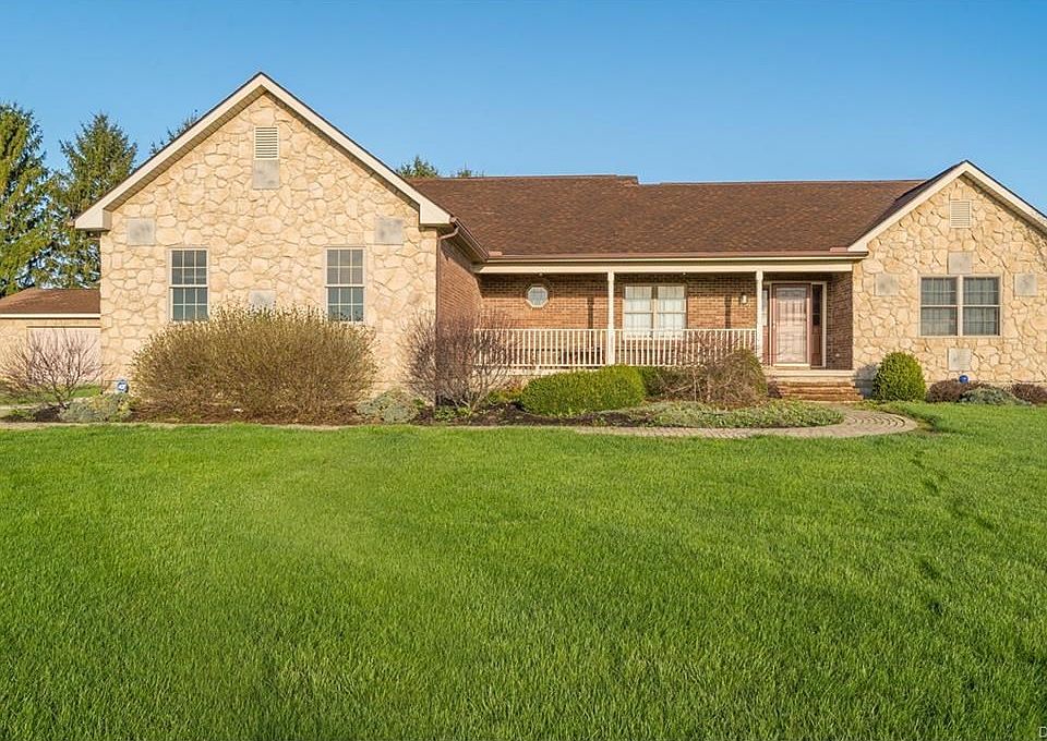 Welcome to your paradise in the country! The two+ acre lot offers beautiful landscaping & a line of mature pine trees for privacy. Relax on the covered front porch or the spacious rear deck. This home offers over 2000 sq ft of exceptionally maintained living space on one floor. Do you love to cook or entertain for friends or family? If so, this is the house for you! The vaulted ceilings in the kitchen and living room give the open concept floor plan a spacious but homey feel. The sizable kitchen features a double oven, an island, corian counter tops in addition to 51 cabinets and drawers. Gorgeous solid oak doors and trim highlight the quality finishes throughout the house. The private master bedroom is tucked away from the other two bedrooms. Ever wanted a man cave? The partial basement is waiting to be finished to your interest. A first floor laundry room makes doing laundry a snap. In addition to the att garage there is also a two car det garage. Call today for your private showing.