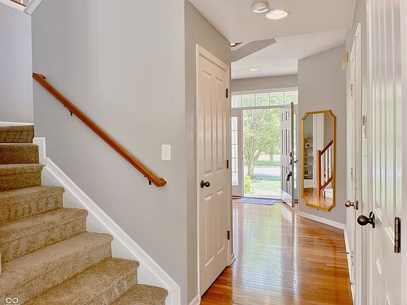 Well-maintained and move-in ready, this stunning two-story Drees home features 4 spacious bedrooms, 2.5 bathrooms, and a 3-car garage. Stepping through the beautiful entrance, you will be amazed by the elegant chandelier and the winder dual staircase balcony overlooking foyer. The gourmet kitchen boasts newer stainless-steel appliances, including dishwasher (2023), stove (2025), and refrigerator (2025). Other major updates include a newer roof (2017), HVAC (2024), and water softener (2023). Enjoy the spacious family room with a cozy fireplace. Raised ceiling (9') on the main level and large windows throughout the house bring abundant natural light. The private master suite offers separate shower and tub, vaulted ceiling, and dual walk-in closets. Most interior walls feature fresh paint. The basement comes with 9' walls, plumbing rough-in, and daylight window, ready for your personal touch. Large fire pit and beautiful pergola (2021) sitting on an expansive concrete patio, perfect for outdoor entertaining. Conveniently located within walking distance to the future Fishers Community Center, Hoosier Road Elementary School, and Hoosier Woods Nature Park. Easy access to I-69. Minutes away from literally everything the fast-growing Fishers has to offer. Top rated HSE schools. Don't miss this opportunity to own this beautiful home in a prime location!