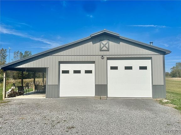 Welcome to Akron, and your very own 2-acre sanctuary! Breathtaking, private property with updated home - and pole barn (2019). Granite, eat-in kitchen boasts newer cabinetry and light fixtures, with a gleaming, brick backsplash. Sliding glass door opens to deck overlooking one inviting property. Full bathroom on each floor, with main floor laundry. Master bedroom with walk-in closet and adjacent full bathroom. Lots of natural light throughout, with fresh paint and newer carpets. Room for the whole family, and perfect for guests! Pole barn has stove (2024), 220 line for electric, and underground plumbing in place for full bathroom. Septic recently cleaned. Natural gas available at street. OPEN HOUSE: SUNDAY, OCTOBER 19TH (11AM-1PM). OFFERS: MONDAY, OCTOBER 20TH (1PM).
