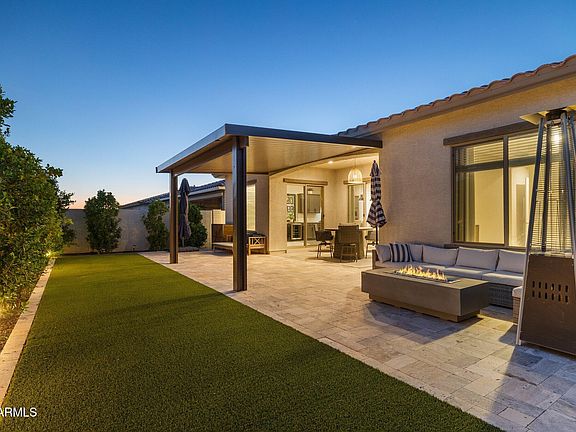 WOW! $30K Under Appraised Value. Recently Appraised for $620,000!! Better than New! Custom Features throughout in this Stunning split floor plan home w/ 4 bedrooms, 2.5 bathrooms, & flexible spaces for modern living. Thoughtfully designed, it offers a dedicated home office & a formal dining/bonus area, perfect for entertaining or working from home. Inside, you'll find Custom Tiling throughout the main areas. 10'' ceilings & Designer paneled doors create an airy, spacious feel. Curb appeal abounds w/ low-maintenance landscaping, an extended driveway w/patio pavers, & a front metal locking swing gate leading to a stylish private front Courtyard. The entryway opens to a Spacious Den & formal dining/bonus area, flowing effortlessly into the Great Room & Gourmet Kitchen. The Kitchen boasts GRANITE countertops, Subway tile backsplash, Custom cabinetry w/ crown molding. Extended island w/ stainless steel undermount sink & pendant lighting. Designer Stainless steel vent hood, 4-burner gas cooktop with griddle. Smart wall oven with touchscreen, Walk-in pantry & a large kitchen breakfast nook w/ sliding glass doors to the backyard. Experience Indoor/Outdoor Living at its' BEST w/ the Great Room's EXPANSIVE DUAL SLIDER, connects to your PRIVATE BACKYARD designed for entertainingfeaturing an extended covered patio w/Travertine pavers, artificial turf, & lush landscaping. And revel in the Superstition Mountain Views! Each bedroom includes a walk-in closet. The hall bath offers a high vanity w/ double sinks & a shower/tub combo. The luxurious primary suite includes, Separate soaking tub & oversized shower, Two Separate Granite-topped vanities, & one w/ a sit-down make-up station And MORE CUSTOM FEATURES! Custom wood accents, wainscoting & board-and-batten throughout. Two-tone interior paint, upgraded baseboards, Cheyenne-style grooved doors, Custom Window Treatments, added can lighting, & designer finishes for a polished look. The oversized laundry room leads to a tandem three-car garage w/ Epoxy floors, overhead storage racks, & a side service door. Enjoy Peralta Canyon Community w/ its Walking Trails, pickleball & basketball courts, horseshoe pits, cornhole, gas firepits, shaded ramadas, BBQ areas, playground equipment, exercise stations, greenbelts, & pet-friendly areas. Plus, Close to Peralta Regional Park where Outdoor Recreation, Hiking & Off Road trails abound! This light, bright, & impeccably maintained home is move-in readydon't miss your chance to own this exceptional property!
