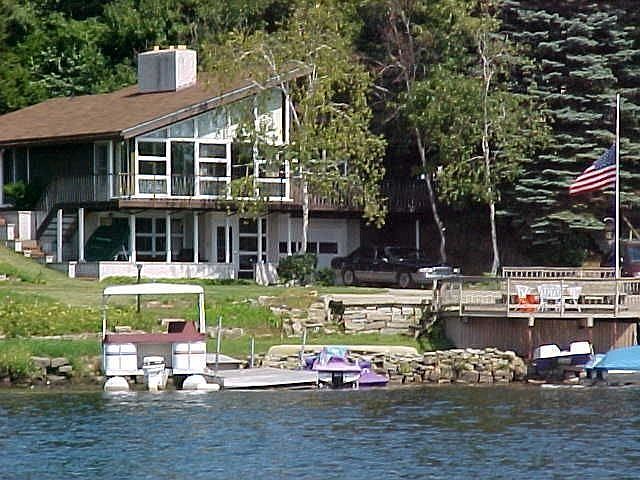 Lakefront house with two fireplaces, two decks and dock. Three bedroom, 2 up & 2 down, 2 baths one up & one down. Private parking for five cars plus garage. Live in year round or just make a summer home. Upgraded kitchen with new oven & dishwasher. Both fireplaces burn wood and one has a pellet stove. Parking for two boats plus water toys. Can add a garage on upper lot. House is available for weekend and weekly rentals. Call and leave message for rental information. Price for rental per week is $1175 for six nights, seven days. Location is in the bay just outside Nye's marina off Route 322 and Route 18 N. Rental includes large screen surround sound TV andinternet service.