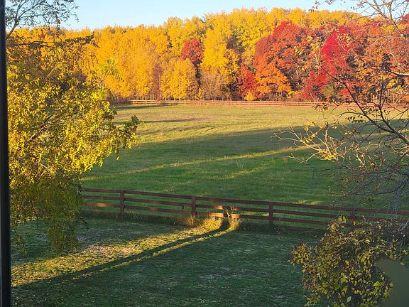 Northwest corner of parcel goes approximately 40 feet into the trees, West of wood fence.