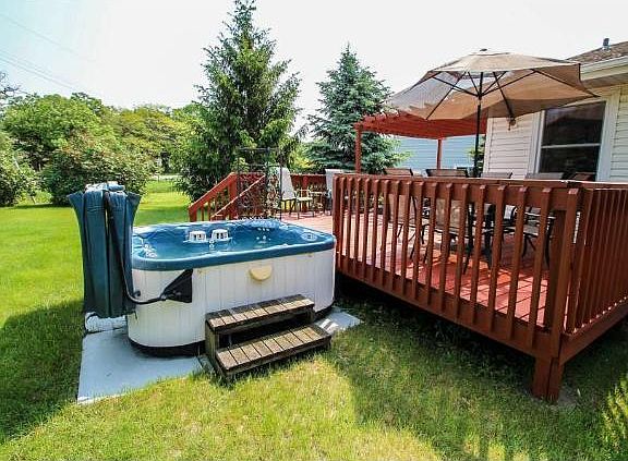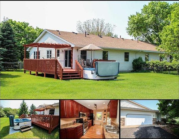 Rambler style twin home finished to perfection! New: Cherry kitchen w/SS appl's, laminate floors, LL carpet, paint, furnace, H20 heater. Updated windows, roof, siding. Sprawling deck, pergola! Large fenced yard on cul-de-sac. Den used as BR3/no window.