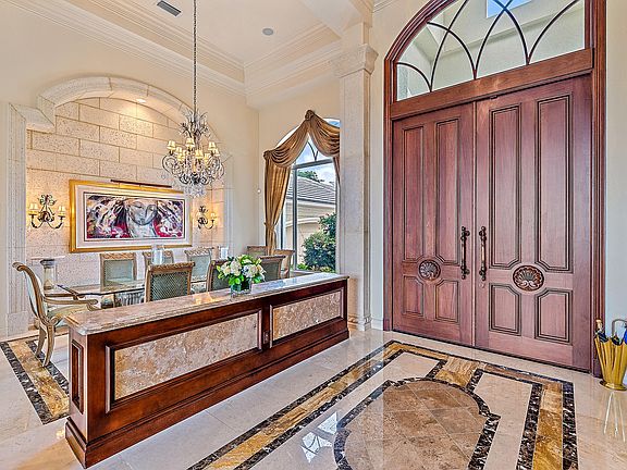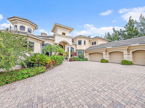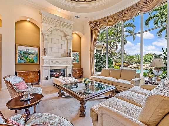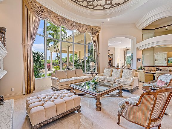 Situated on Intracoastal Terrace in a unique private setting, this home offers a new family endless opportunity. Every option for entertaining family and friends can be accommodated in this fabulous enclave. With more than 7,700 sq. ft. under air there is space for the largest of family gatherings and reunions. The ground level offers three ensuite bedrooms. The primary suite is an oasis of tranquility, tucked away in its own wing. Presenting a lovely sitting room, his and her baths and enchanting views of the gardens and pool. Two very large walk-in closets complete the suite. The common space, formal living room, family room and dining room boast light-filled rooms and sparkling views. A large richly paneled library is perfect for reading a book, paying the bills or watching golf. Two additional ensuite bedrooms are located on the second level for a total of five ensuite bedrooms. A large three car garage and expansive storage make this home complete. All this just a short golf cart ride to the first tee, fitness center and practice tee. Come home to the Jupiter Hills lifestyle!