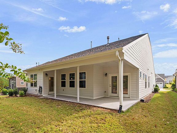 Welcome to this beautifully updated home in Durham's sought-after Fendol Farms 55+ community, featuring fresh paint and new carpet throughout. The thoughtfully designed layout blends comfort and style, beginning with a versatile office complete with a built-in cabinet. The heart of the home is the kitchen, showcasing a large curved island with upgraded pendant lighting and a modern chandelier in the dining area. The living room is enhanced with surround sound, perfect for movie nights and entertaining. Retreat to the spacious primary suite, highlighted by a tray ceiling and an extra sitting area—ideal as a reading nook or private office. Both bathrooms feature walk-in showers for ease and convenience. Step outside to the covered back porch, overlooking a serene wooded buffer that provides privacy and a natural backdrop. With its inviting living spaces, thoughtful finishes, and access to Fendol Farms' vibrant amenities, this home is ready to welcome its next owner. Enjoy life in a community that makes it easy to stay active and social—whether you're playing pickleball on one of the six lighted courts, enjoying the beautifully maintained trails, or visiting the nearby dog park. Weekly and monthly events, clubs, and gatherings offer ample opportunity to connect. Fendol Farms provides unmatched amenities: a clubhouse, fitness center, resort-style pool, tennis courts, community garden, dog park, and more. HOA covers lawn maintenance, high-speed internet, and a TV package through Spectrum. Ideally located near RDU Airport, RTP, shopping, dining, and entertainment—including Brier Creek's wide array of restaurants, retailers, and a movie theater—this home truly offers the best of luxury, lifestyle, and location.