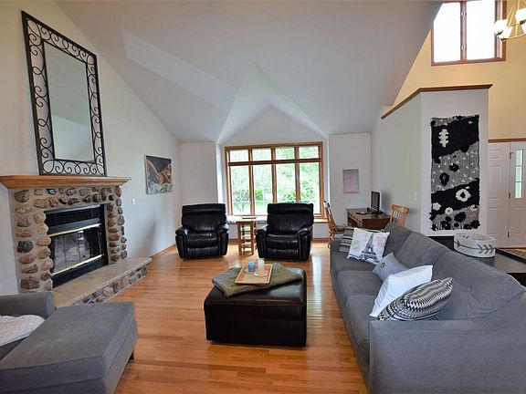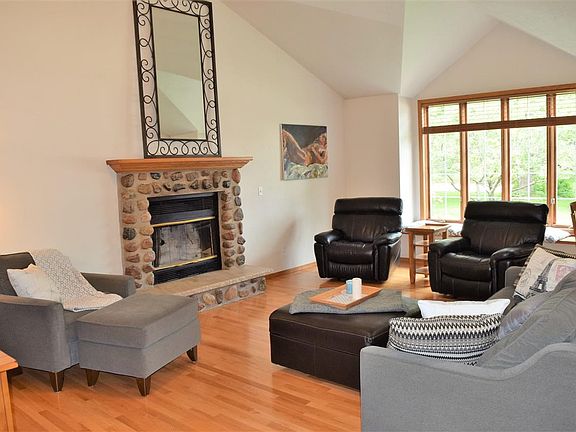 Stunning inside & out this 3 bedroom 4 bath home is tucked at the end of a quiet cul de sac with a spacious backyard boardered by woods & filled with wildlife. Inside you will discover all the amenities & updates you could ask for. Full baths are updated with granite counter tops & the kitchen with beautiful quartz. Vaulted 2 story living room ceiling with a woodburning fireplace with natural gas prepped if preferred. Spacious 1st floor master suite with walk in closet. Additional updates include roof, furnace & tankless water heater. Don't miss the lower level family room & half bath.