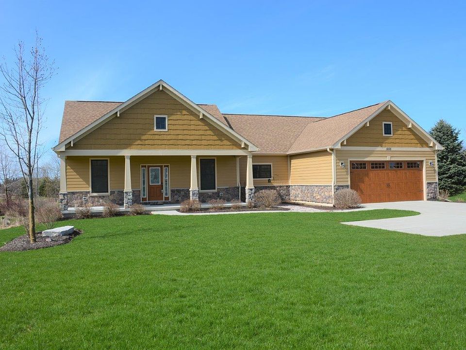 Pheasant Ridge Home on 1/2 acre shines like new! - Beautiful nice light open floor plan includes lots of upgrades - 9 ft ceilings, gleaming bamboo floors, wide moldings & trim throughout, solid 5 panel wood doors, living rm with skylights, fireplace and den with arched paneled doorway. The gourmet kitchen will please a chef with large island, granite counters, SS appliances, tiled back-splash & awesome etched glass pantry door. The dining room & kitchen open to screened porch sun room with wood ceiling, large deck & yard patio all viewing property & pond. MBR bath is beautifully tiled with granite top dual vanities, jetted tub, separate shower and his & her closets. Recently updated main floor Laundry with new cabinets has great storage. Basement is capped for bath, ready for finishing