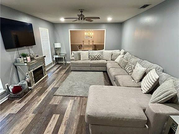 Beautiful formal dining areaLarge backyardAmple storageRecessed lightingStainless steel appliancesSplit brick flooring