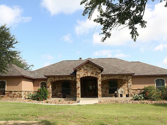 Country living on 11.231 Acres in this Custom built home is a must see. This home features an open concept with 2554 sq ft living area, The living room and kitchen has a cathederal ceiling with cedar beams. The kitchen has granite counters, knotty alder cabinets, gas stove, and stainless steel appliances. 4 bedrooms, an office study, 3 full baths. 18" Travertine tile in all living areas, halls, and baths,bamboo flooring in the Master bedroom. This is a very desirable property located close to IH 37.