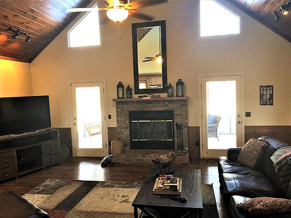 BEAUTIFULLY RENOVATED CLIFFTOPS HOME features spacious rooms for comfortable living & entertaining; Vaulted ceiling & wood-burning fireplace in living area; Large open kitchen that cooks will love; Master suite has fireplace; Screened porch, decks, hot tub & fire-pit invite outdoor living; Two car garage & abundant storage inside & out; Community amenities include pool, tennis courts, play ground, and an almost 70 acre lake for swimming, fishing & non-motorized boating. Furnishings remain.