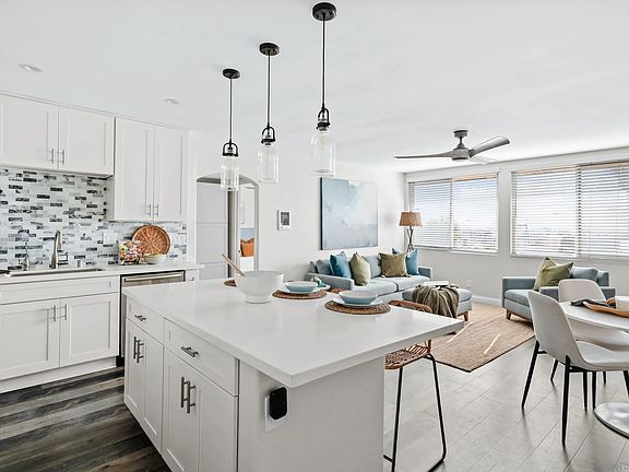 - Ceiling Fan, Kitchen Island, Recessed Lighting, Remodeled Kitchen, Kitchen Open to Family Rm