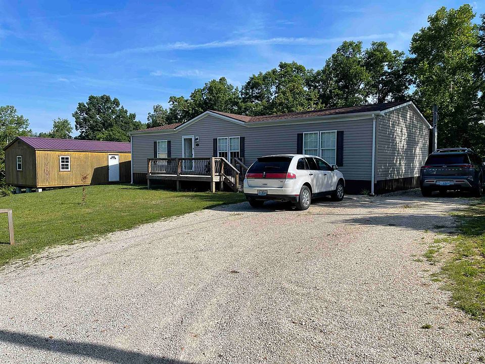 Blending the best of both worlds, this exceptional 1.5-acre property offers a peaceful atmosphere and development potential, located just outside of City limits. The modern 2016 manufactured home features a sleek kitchen with a tabletop bar and refrigerator, dishwasher, and range included. It also boasts a dining room, spacious living room with a gas fireplace (never been hooked up to gas line), three bedrooms, and two full bathrooms, as well as a large laundry room with washer and dryer included also. Enjoy the beautiful covered back porch and a new front deck, while the storage in the back yard remains with home. The large storage building beside home does not stay. Call for a showing.