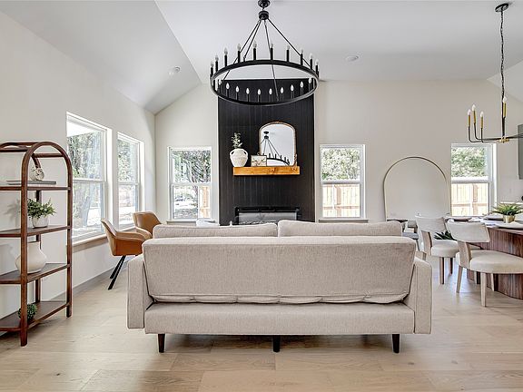 Welcome to this 2025 new construction house with a charming front porch. As you step inside, you're greeted by a spacious open floor plan. Engineered hardwood flooring throughout the main living spaces and bedrooms. The living room features a gorgeous chandelier with a built-in electric fireplace. The dining area features its own statement chandelier, seamlessly flowing into the show stopping kitchen. In the heart of the home, the kitchen boasts with an island, a sit-in kitchen, quartz countertops with dramatic gold veining, a farmhouse sink and a white tile backsplash. The primary suite is a peaceful retreat, featuring a boxed ceiling, a designer ceiling fan, and a spa-inspired ensuite bathroom, the double vanity, with a stand up shower and a nice size walk -in closet with built ins. The split bedroom floor plan ensures privacy with the other two bedrooms located on the opposite side of the house, both bedrooms are spacious with walk in closets. The main bathroom features a glass enclosed tub-shower combo and elegant gold accented fixtures for a cohesive, upscale look. There is a detached garage at the end of a long driveway and a covered back patio overlooking a nice sized yard. The home also features recessed lighting throughout the house. Don't miss the chance to make this stylish and thoughtfully designed home yours! The information provided is deemed reliable, but neither the seller or the listing broker make any guarantees or representation as to accuracy. Buyer and BA to verify all information and conduct their due diligence. Stove and vent hood has been installed.