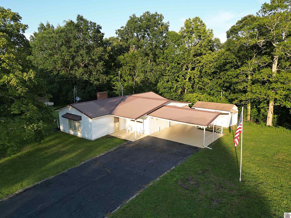 Looking For A Home With Acreage Near The Lakes? Then Look No Further With This 2 Bed 1 Bath Home Nestled On (surveyed) 9.49 Acres Of Land Just Minutes From Pirates Cove Resort And Kentucky Lake! This Home Features 2 Large Living Areas Perfect For Larger Gatherings. The Kitchen Features Plenty Of Cabinet Space And Is Open To The Living/dining Area. Beautiful Floor To Ceiling Brick Fireplace Perfect For An Additional Heat Source If Needed. Updated Vinyl Flooring Through Much Of The Home. Large Bathroom With Tons Of Potential. Both Bedrooms Feature Nice Closet Spaces And 1 With Built In Storage. Roomy 2 Car Carport. Laundry Area In Detached Building. Large Detached Shop With Separate Power Service Perfect For Projects. Don't Miss Out!
