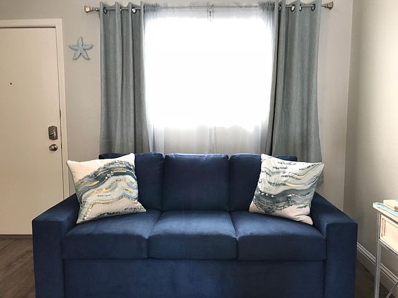 Welcome to Unit B of this charming duplex, featuring only one shared wall with the neighbor for added privacy. This spacious 799 square foot apartment offers 2 bedrooms and 1 bathroom, complete with an updated kitchen, a cozy dining area, and indoor laundry equipped with a full-size washer and dryer. Conveniently located near major shopping centers, restaurants, beaches, and entertainment options, this apartment is in a prime location. It's the perfect place to call home! 1 year Lease. Owner pays for water & sewer.