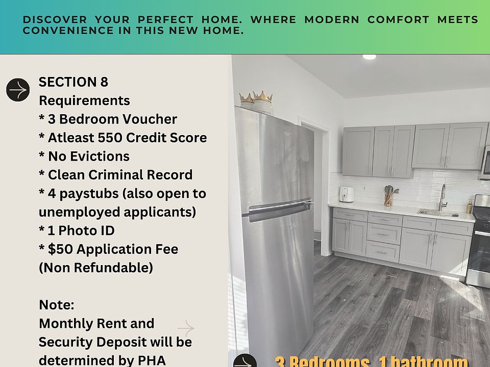 Welcome to 1205 Herbert St., a beautifully renovated 3-bedroom, 1-bathroom apartment designed with comfort, style, and convenience in mind. Perfect for Section 8 voucher holders, this charming unit offers a unique blend of modern upgrades and cozy features in a prime Philadelphia location.