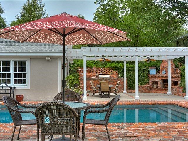IMMACULATE HOME with POOL HOUSE IN SUMMERVILLE!!!This 5 or 6 bedrooms,4.5 bathrooms,Gorgeous sun room,Library with built ins and fireplace with access to the covered patio,Living room has fireplace with built ins,Kitchen features honed granite counter tops,a steam,convention and microwave ovens,professional 6 eye burner with pot filler, tons cabinet storage,Mud room has lots of storage,big farm sink & half bath also has access to the beautiful landscaped back yard with heated salt water pool and pool house.Pool house has full bath,Kitchen has granite counter tops with stainless farm sink,Backyard is perfectly landscaped with raised garden & flower beds brick walk ways and fountains.There is an out door kitchen and fireplace.Pool has been resurfaced also has new heater and pumps.Home has all new Pella windows, new blinds,Beautiful crown molding,hardwood,slate and tile thru out the home.So many wonderful features!Great location!Within walking distance to everything!