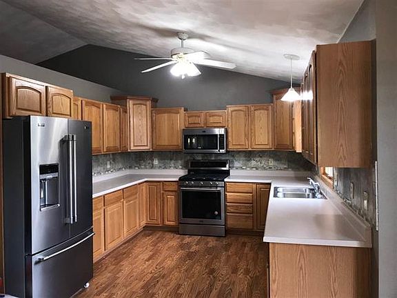 Make this house YOUR HOME... all 2500 sq ft of it. 4 bedrooms, 3 baths with a 2.5 car garage situated on a partially wooded .68 acre lot in a desirable edge of town location. Quality construction, freshly painted walls and new flooring make this home ideal. Main floor laundry, vaulted ceilings, 6 panel oak doors, trim and a functional kitchen with an abundance of oak cabinets. Living room has a cozy wood burning fireplace and a family room in lower level provides a great space for entertaining. Master bedroom suite has a walk in closet. Additional features include newer stainless steel appliances, a fenced area for pets, spacious deck and a fire pit to warm up by on cool Fall evenings.