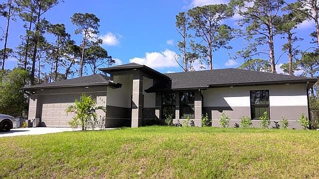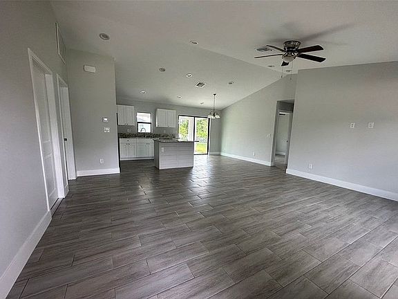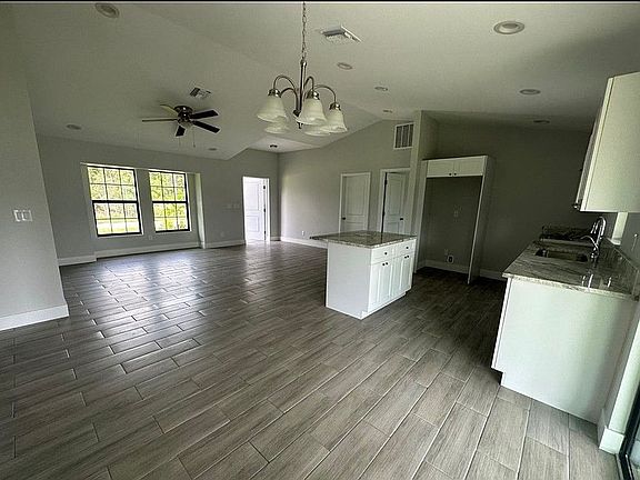 Don't miss the opportunity to own this beautiful 2022 home READY TO MOVE IN with 3 bedrooms, 2 baths, 2 car garage on an HALF an ACRE cleared lot). This home boasts beautiful curb appeal, tile throughout, granite counter tops, garage door opener, stainless steel appliances, washer and dryer , walk in closet, lanai, sprinkler system, impact windows, custom blinds on windows, alarm system + ring cameras installed, fenced in quarter acre, with an screened in front door and lanai! Newly planted fruit trees, plenty of room for more! Brand new large tank Reverse osmosis installed providing home with top quality water! You will love this luxurious modern home giving you privacy and tranquility! No Flood Zone! Buyer Realtor welcome.