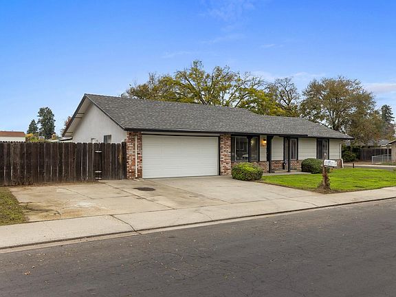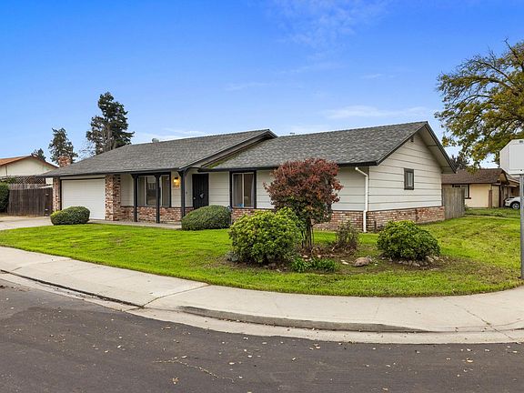 Single story home located in an established neighborhood of East Modesto. This home features three bedrooms, two full bathrooms and 1469 square feet of living space. Situated on a 7500 square foot corner lot. Attached two car garage with automatic opener, laundry hook ups and built in work bench. Oversized driveway provides plenty of parking! Tiled entry as you enter the front of the home opens to the formal living room with picture window. At the back of the home is the separate family room with fireplace and slider leading to the covered patio. The kitchen opens to the family roof giving your that sought after open floorplan. The kitchen has double ovens, gas range, dishwasher and eating bar area. Dining space next to the kitchen with tiled floors and pantry closet. Hall bathroom with tiled tub. Primary suite has a private on suite bathroom with tiled shower and walk-in closet.