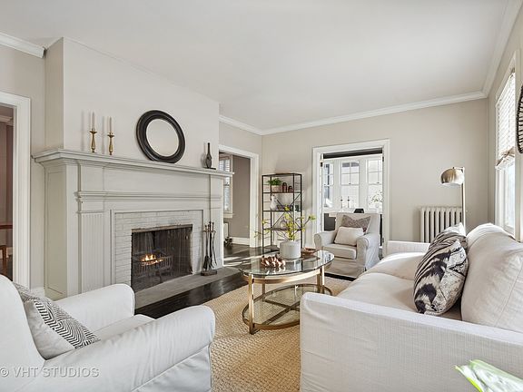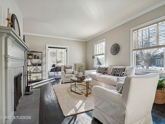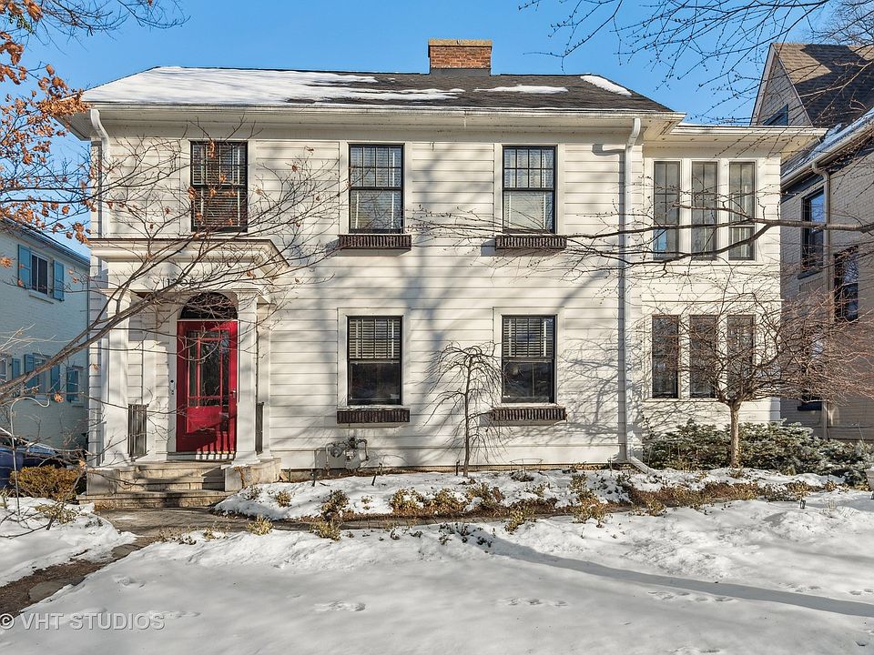 First time on the market in 24 years, the current owners are only the third family to enjoy living in the house! Since 2000, the house has been totally renovated including all new electrical and plumbing throughout, new 2 story addition featuring kitchen and second-floor primary suite. The first floor was opened up to connect the living and dining rooms with custom moldings and archways - now an ideal space for entertaining. The front entry features a rebuilt front staircase with custom made railing and banister. The newer kitchen features a limestone floor with radiant heat, custom walnut cabinets and stainless steel counters and appliances, white subway tile and three walls of windows. The primary suite features a vaulted ceiling, heated floors, a wall of built-in closets, adjoining dressing/sitting room and private primary bathroom. All windows were replaced with Marvin windows and a new roof (2006). In 2012, the second-floor sun room was added with full height Marvin windows and radiant heated floor. Space pac air conditioning installed in 2022. On the exterior, between 2006-2008, the original house siding was replaced with specially milled Spanish cedar and painted. The original entryway was replaced with a portico featuring limestone steps, cedar and mahogany columns, and a copper clad roof. The brick paver driveway offers parking for 2+ cars. The entertainment size Brazilian hardwood deck (18 X 24) is accessible from the dining room French doors, and overlooks the expansive fenced backyard with room for perennials, play space, and gardens. In 2010, the current two car garage was converted into a woodworking studio with French doors, electric baseboard heat, AC wall unit and wood-burning stove. It can remain as a separate work area, or de-converted back into a garage. Enjoy this ideal central location within walking distance of downtown Evanston and Main Street retail, restaurants and Metra/CTA trains; both Washington and Nichols Schools and the new Robert Crown Community Center.
