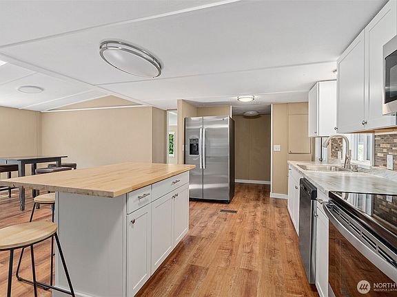 Just update. 1,100 sq ft double-wide home located in the peaceful and private Town & Country Estates community. This charming 3-bedroom, 1.75-bath home features a spacious primary bedroom and an open-concept floor plan that creates a cozy, inviting atmosphere. Numerous upgrades include fresh paint, new roof, updated cabinets, new flooring, LED lighting, and stainless-steel appliances. The property also offers a 1-car carport with an attached storage shed, perfect for tools or extra storage. Situated in a desirable 55+ park, it’s conveniently close to town and features a small yard ideal for pets. Perfect for those looking to downsize and enjoy a low-maintenance lifestyle in a welcoming community.