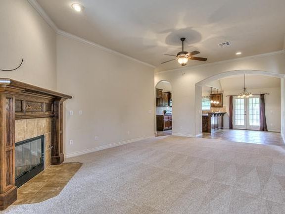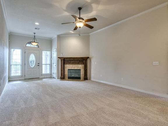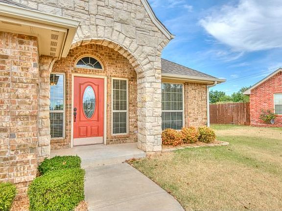 Beautiful home nestled on an oversize cul-de-sac lot! The spacious split floor plan has all new carpet and paint making this home move in ready. Boasting 3 bedrooms and 2 bathrooms, custom built oak cabinets, 2 " blinds and crown molding throughout the home. The kitchen offers a large eating space at the bar with an additional dining area as well. 3rd car drive thru with pad. Security system. Storm shelter. This home is move in ready and waiting for you! Call today to schedule your showing!
