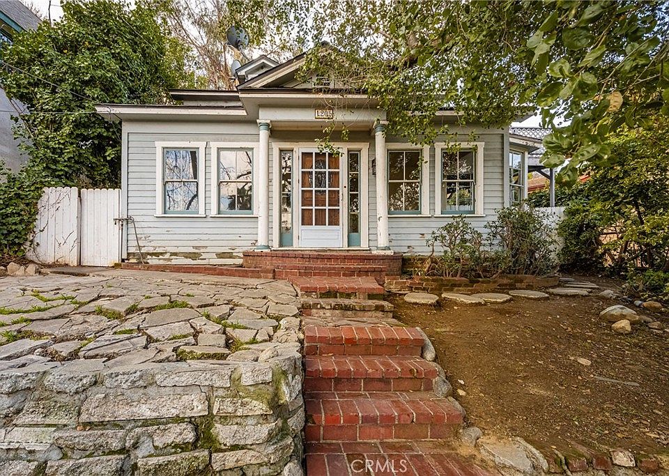A fantastic starter home in South Pasadena - listed at just $1,099,000. There are incredible views without driving way up into the hills! It’s a rare blend of value, solitude and convenience. Are you looking for a cost effective 3 bedroom, 2 bath home in South Pasadena? Well this is it! So much charm with original hardwood floors throughout, plus a well crafted original staircase and bannister. Those views are best accessed via the extra large 661 square foot deck off the primary bedroom and overlook the San Gabriel mountains. There’s also a bit of untouched land with mature trees up the hill in the back yard that gives a feeling of peace with nature. You'll also find pomegranate, kumquat and loquat fruit trees on the property. This is a two story home with one bedroom downstairs and two bedrooms upstairs. There is one bathroom downstairs and a larger bathroom upstairs. The kitchen is a generous size with an open design. The main entry features hardwood floors, plenty of space and a large bay window. Don’t miss your chance to live in the South Pasadena School District in a charming home at the best price. This cute cottage needs just a little TLC to make it the perfect home. It’s definitely the best deal to be had on a 3 bedroom, 2 bathroom home in South Pasadena. NOTE: This home has stairs that lead up to the front door plus it is a 2 story home - it's a home best suited for buyers that can accommodate stairs.