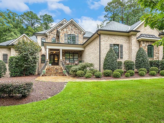 Discover luxury living in this beautiful executive home in the sought-after MacGregor Downs community, with stunning views of the 14th fairway and a private backyard retreat. Designed with both style and practicality in mind, this home offers three thoughtfully finished levels. At its center is a chef's kitchen featuring Thermador appliances, custom cabinetry, a center island, walk-in pantry, and a bright breakfast area. The formal dining room, with its coffered ceiling and butler's pantry, is perfect for hosting, while the family room offers a cozy fireplace framed by custom built-ins and matching coffered ceiling. The MAIN floor Owner's Suite is a peaceful retreat with a vaulted ceiling, two walk-in closets, and a spa-like bath with dual vanities, a freestanding Victoria + Albert tub, and a large tiled walk-in shower with dual entrances. A guest suite, powder room, mudroom, and laundry complete the main level, along with a screened porch featuring a vaulted ceiling and stone-surround fireplace, perfect for relaxing or entertaining. Upstairs, you'll find three bedrooms, bonus/media rooms with wet bars, and a second laundry. The finished basement is ideal for entertaining, with a fireplace, bar, game area, den, exercise room, sixth bedroom, full bath, and access to storage. The outdoor space is just as impressive, featuring a private pool, hot tub, fire pit, flagstone patio with a built-in bar and grill, a landscaped fenced yard. An irrigation system covers the entire yard. The home also includes a 3-car garage on the main level and a 1-car golf garage on the lower level. MacGregor Downs Country Club memberships are available, and the home is minutes from Waverly Place, Whole Foods, WakeMed Cary, Koka Booth Amphitheatre, Hemlock Bluffs Nature Preserve, parks, and greenways, with easy access to US-64, US-1, and I-40.