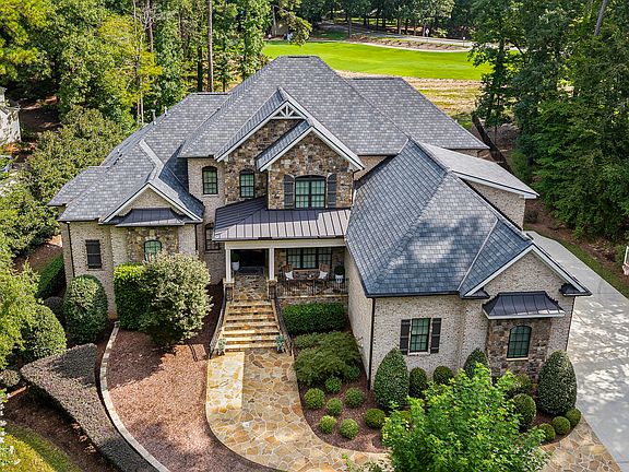 Experience luxury living in this stunning executive home located in the prestigious MacGregor Downs community, with captivating views of the 14th fairway and inviting backyard oasis. Meticulously designed for both elegance and function, this residence blends timeless craftsmanship with modern comforts across three beautifully finished levels. The heart of the home is an exquisite chef's kitchen, showcasing high-end Thermador appliances, crowned cabinetry, a center island, walk-in pantry, and bright breakfast area. Entertain with ease in the formal dining room, featuring a coffered ceiling and an adjoining butler's pantry. The adjacent family room mirrors this refined aesthetic with its own coffered ceiling and fireplace framed by custom built-ins. The MAIN floor Owner's Suite is a tranquil retreat, boasting a vaulted ceiling, two walk-in closets, and a spa-inspired bath with two vanities, a luxurious Victoria + Albert freestanding tub, and an expansive tiled walk-in shower with dual entrances. A guest suite, powder room, mudroom, and laundry complete the main level. Upstairs boasts 3 bedrooms, bonus/media rooms with wet bars, and a 2nd laundry. The finished basement transforms into a full entertainment suite with a fireplace, a bar, game area, den, exercise room, sixth bedroom, full bath, and access to unfinished storage. Outdoor amenities are equally impressive, with a private pool, hot tub, fire pit sitting area, flagstone patio with built-in bar and grill, a beautifully landscaped fenced backyard, and a screened porch with stone-surround fireplace. An irrigation system services the entire yard. The home offers an attached 3-car garage on the main level and a 1-car golf garage on the lower level. Memberships to MacGregor Downs Country Club are available, and the location places you just minutes from Waverly Place, Whole Foods, WakeMed Cary, Koka Booth Amphitheatre, Hemlock Bluffs Nature Preserve, area parks and greenways, with quick access to US-64, US-1, and I-40.