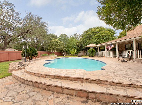 You'll fall in love with this stunning home located on a cul-de-sac lot with mature trees. Relax on your covered patio while watching family/guest playing in the pool. The open floor plan creates an inviting atmosphere with high ceilings in living/dining area. Enjoy the master suite and spa like shower. Two secondary bedrooms with full bath. Stained concrete flooring. Garage has heating and air. Call today for your private showing.