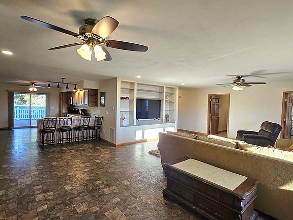 This beautiful, well built home has a very spacious open floor plan!!! 4 bedrooms and 2 large full bathrooms. One of the bathrooms boast the laundry room as well. Plenty of natural light throughout! Living room, informal dining and breakfast bar/kitchen area are the perfect place for entertaining your guests or keeping your family close! You will be amazed with the 4 car finished garage , and storm shelter built in a lower part of garage. The home recently being advertised on VRBO and Airbnb and is zoned commercial. The possibilities are endless if you want to keep as an income producing home or if you want to move right in and make it your residence! There are 2 buildings and a big parking lot listed separately but also for sale! Seller is having everything surveyed before closing to convey exact lot size and easement.