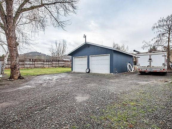 Located in SW Medford, you will find this 3 bed, 2 bath, 1,400 SQFT home on two tax lots with Irrigation from Medford Irrigation District. The entrance features a one of a kind automated gate and extra parking for RV's and more! In addition to the parking are 2 detached, finished garages with power. One garage has a workshop space with water, cabinets, countertops and a sink. Upon entering the home, you'll see new laminate flooring, 2 living rooms and a dining room with vaulted ceilings. The home has been well maintained and has new interior and exterior paint. The kitchen has stainless-steel appliances and the master suite is spacious, features a walk-in closet and private bathroom. Other notable features are the large yard and garden area adjacent to the irrigation canal just behind the property. The home also features a large deck with a hot tub. Call today to schedule your showing. Listing agent is related to seller.
