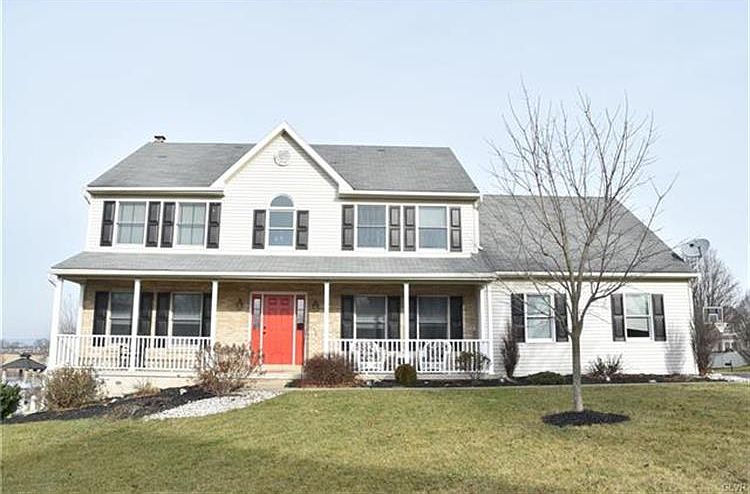 Masterful and unique design embody this Forks Township 4 bedroom colonial located on an oversized corner lot with gorgeous panoramic views of the valley from its rear patio. This home features a lovely family room with a built in wood burning fireplace with newly installed crown and chair rail molding, wall to wall carpeting, and a tiled vaulted foyer. Highlights include a large eat-in kitchen (with upgraded appliances and brand new backsplash) which leads into a convenient first floor laundry and powder room and second floor spacious bedrooms including a luxurious master bedroom containing 2 walk-in (his and hers) closets with a skylight over a large soaking tub. Your one of a kind extra long driveway leads to a side entrance garage. Don't miss the opportunity to call this home yours!Built by Tuskes