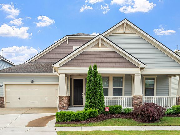 Move-in ready Craftsman Ranch home in desirable Creekside at Bethpage, a 55+ Active Adult Community. This open and light floor plan has 3 bedrooms, 2.5 baths, a flex room/office and a full glass enclosed sunroom. Gourmet kitchen layout includes gas cooktop, wall oven, upgraded cabinets with under cabinet lighting, granite countertops, pull-out drawers and soft close drawers and cabinets. Large walk-in pantry. Large primary bedroom suite includes sitting area, tray ceiling, bay window, built-in bookcase and large walk-in closet. Primary bath with upgraded walk-in shower with seat. Flex room/office with double doors for privacy. Engineered hardwoods throughout home, except for the two secondary bedrooms. Relax in the large, flat, private backyard. Community amenities include clubhouse with gym, exercise classes, billiards, clubs and planned activities. Outdoor swimming pool, pickleball and tennis courts. Creekside is conveniently located just minutes from the Brier Creek shopping area, dining, and the RDU airport.