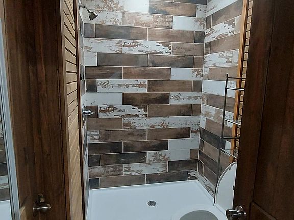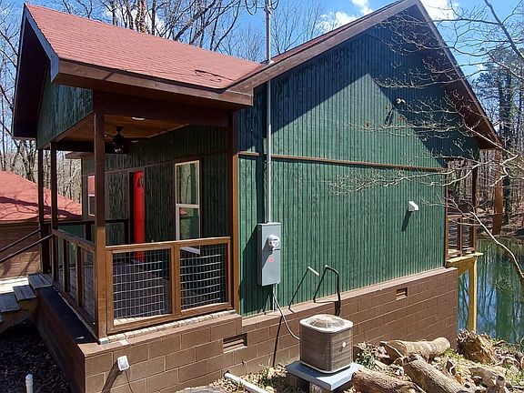 Beautiful one bed/one bath scenic log cabin on pond! Just FIVE min. from Costco, and the Promenade this house was built in 2021 and features beautiful stained shiplap walls, LVP flooring, custom tile bathroom, custom kitchen, and lots of windows to let in all that natural light. Home also features huge deck for entertaining overlooking a tranquil pond full of bass, catfish, and brim.