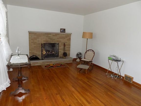 Nice two bedroom, one bath home on corner lot conveniently located close to town. Eat-in kitchen with fresh paint and new linoleum flooring. Living room with hardwood flooring, wood burning fireplace with gas insert and fresh paint. Main floor bathroom and bedroom with hardwood flooring. Nice addition added in 1979 with dining room open to large family room 17' 6" x 15' 3" with patio doors, new carpeting and panoramic window views. Upstairs has a landing and large bedroom 19' 3" x 13' 9" with built in desk and drawers. Enjoy spectacular sunsets from the enclosed porch with knotty pine. Full basement with laundry hookup, recreation room and fresh paint. Beautiful yard with lots of mature trees, circle driveway and 11' x 18' out building. Call to set up a showing.