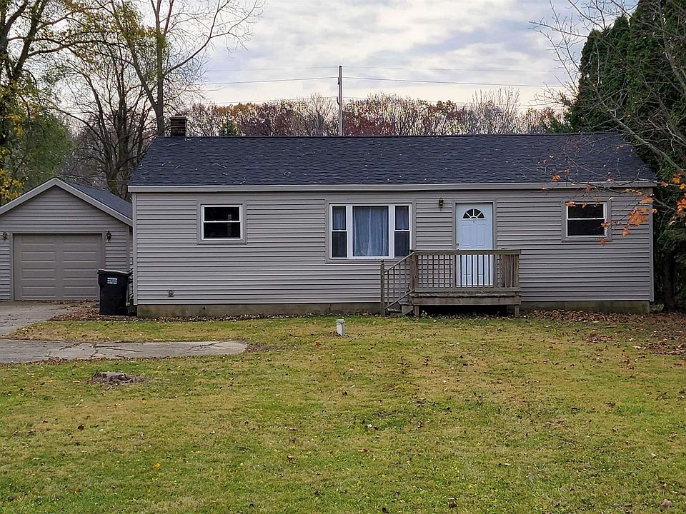 Rural setting just minutes from town. This 3 bedroom, 1 bath Ranch home sits on a large lot and offers an open floor plan, main floor laundry room, central air, detached 1 car garage and new roof on house and garage in 2022!
