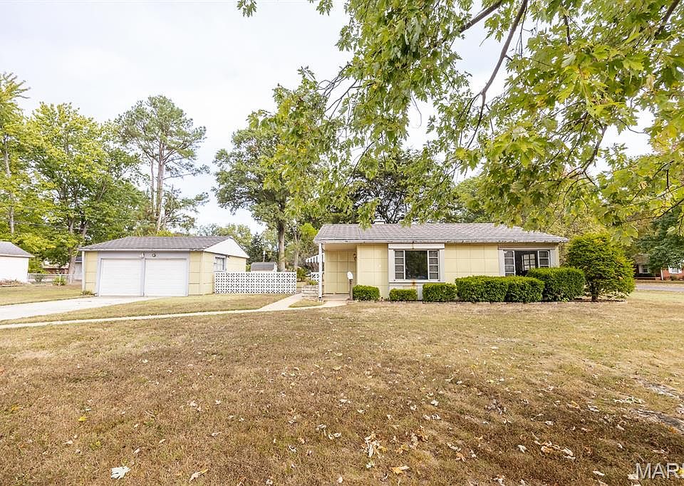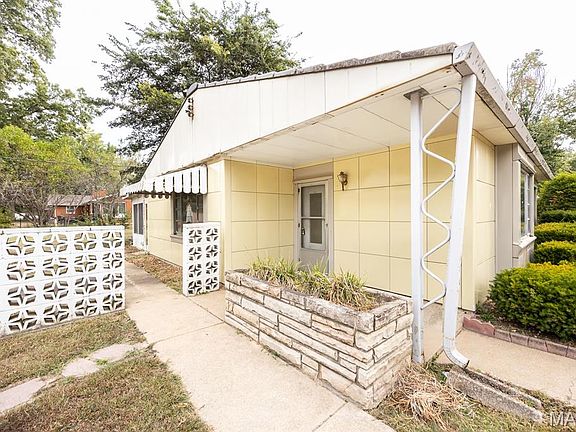 Charming and unique 2-bedroom, 1-bath Lustron Home featuring all-steel construction with a durable baked enamel finish. The living room offers built-in bookcases, while the primary bedroom includes a convenient built-in vanity. Enjoy meals in the bright dining area and relax in the kitchen that opens to a screened porch—perfect for outdoor enjoyment. Situated on a spacious corner lot with a detached 2-car garage. Conveniently located near schools, shopping, parks, and Scott AFB. Home is being sold **AS IS**. Buyer to verify all information.