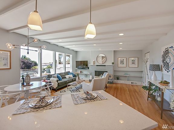 Gorgeous Broadview home remodeled with beautiful Olympic Mountain views. Light and bright inside with new kitchen cabinets and counters. SS appliances and hardwoods on the main floor. 3 bedrooms and office/Den could be a 4th bed. 2 bathrooms fully remodeled. Large family room and with fireplace and built-ins. Spacious and open floor plan great for entertaining. Day light basement. Located minutes from Carkeek Park, Bitter Lake cmty ctr, I-5 & Rt99, shopping and restaurants.