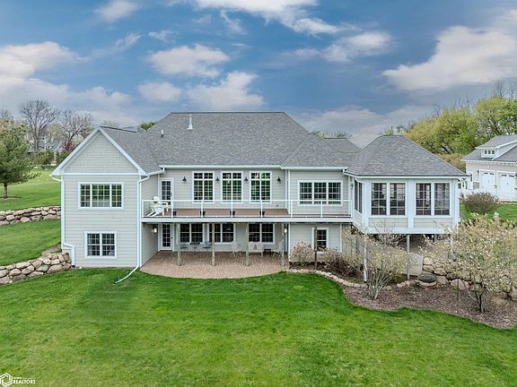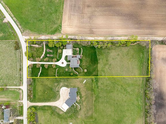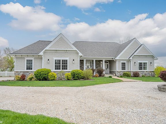 Discover your dream home sitting on 4.5 beautifully landscaped acres, this custom built home offers a seamless open floor plan designed for comfortable living and effortless entertaining. Step into the grand living room, which flows naturally into the custom kitchen with built-ins. Nearby is an elegant dining area with striking coffered ceilings that encourage friends and family to linger. Enjoy quiet moments in the cozy den or the three season room (352 sq ft not included in total sq ft), both perfect for entertaining. Entering from the heated two stall garage, you'll find find a generous foyer to store coats and shoes to keep your home organized and clutter free. The primary suite features vaulted ceilings and a spa inspired bathroom with heated floors, double vanity, walk-in tiled shower, soaking tub, and custom closets with doors for a tidy finish. A conveniently located laundry room, second bedroom, and 3/4 bath complete the main floor. The walkout lower level expands your living space with heated floors, two additional bedrooms, a family and game area, 3/4 bath, a dedicated storage room, bonus hobby room, and a utility room. For car enthusiasts or extra storage there is a heated, detached 2 stall garage with a walk up attic. This home combines open concept design with thoughtful details and abundant natural light, offering a functional layout that is idea for today's busy lifestyles.