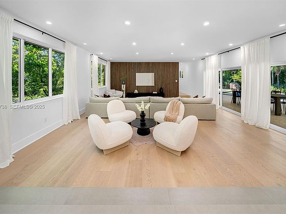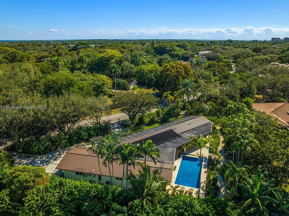 This fully renovated contemporary estate in the heart of Pinecrest offers 3,191 SF of refined living on a 26,963 SF lot. Flooded with natural light, the home features impact windows, plantation shutters, and large-format grey porcelain tile floors. The open kitchen showcases Italkraft custom cabinetry, striking grey quartzite countertops, and premium appliances. A serene primary suite includes a spacious walk-in closet and a spa bath. Outdoor living shines with a sprawling covered terrace and a breathtaking naturalistic grotto waterfall and emerald pool, complemented by a saltwater heated pool, lush landscaping designed by Raymond Jungles, solar panels, and an AC-equipped 2-car garage.