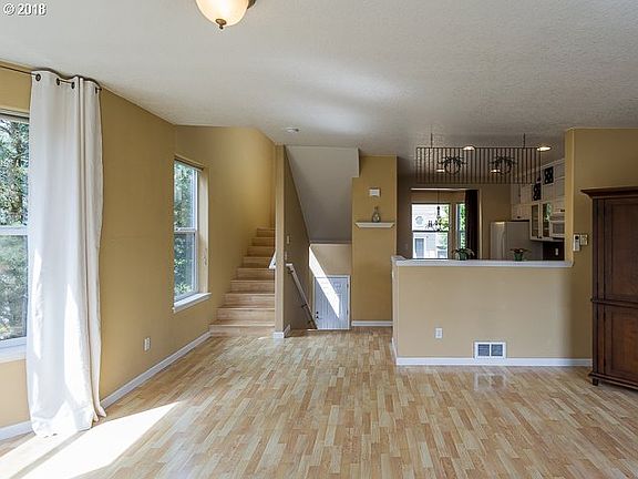 Rare updated end unit w/fenced backyrd/patio w/pavers,pergola & fountain,raised garden beds!!Light& bright.Exposed brick English Pub style brick walls.Daikin Multi-zone ductless heating/cooling.Roof 2013,New front porch,siding & paint south wall 2017.All applcs can stay.Back bedrm w/Mt Hood View & WI storage.3rd bedrm on lower level(Bonus Rm)has free-standing closet,(office?)New Seasons,Cinetopia,parks,lake & walk trails,more