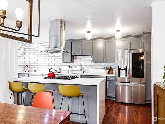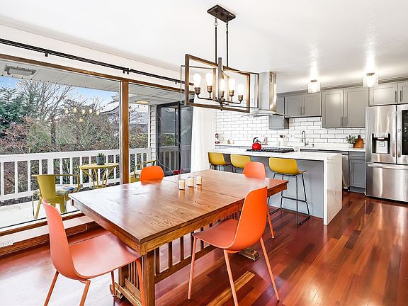 This renovated Mid-Century Modern on an expansive lot in Broadview is the perfect home for multi-generational living! Mid-Century finishes meld w/ modern updates to create wonderful balance & flow. The remodeled Kit w/ new cabs, Quartz cntrs, SS appls, & eat-in bar opens to the dining space & double-sided frplc. Around the corner is the semi-separate living rm- the perfect lounging area. 3 bedrms are on the ML; including a spacious primary w/ en-suite bath & access to a private outdoor patio & the 2-car grg. The LL features a full kitchen, 3 addl bedrms, & full bath + bonus space & utility room. Don't like to play basketball? How about a DADU? Quiet & walkable neighborhood close to Carkeek Park & Beach, w/ easy commutes to Downtown Seattle.