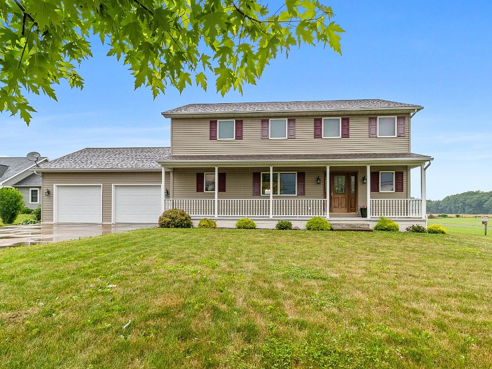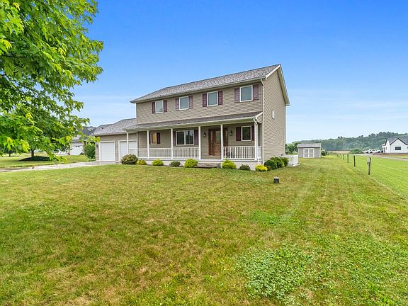 Be the first to view this custom built beautiful four-bedroom 3 bath home situated on a spacious 1.09-acre lot near Edinboro Lake, offering a serene setting. features eat-in kitchen with oak cabinetry, granite countertops, and elegant hardwood floors throughout. The first floor features a large living room, a formal dining room with French doors, and a convenient first-floor laundry room and full bath. Upstairs, you'll find a primary bedroom with a walk-in closet and three additional spacious bedrooms. The lower level provides second kitchen, canning room, and a walkout basement. Outside, the property features an oversized 2-car attached garage, four storage sheds, a fire pit, a fenced-in area for animals with a feeding shed, and a charming, covered porch. Located in the General McLane school district, this home is must-see.