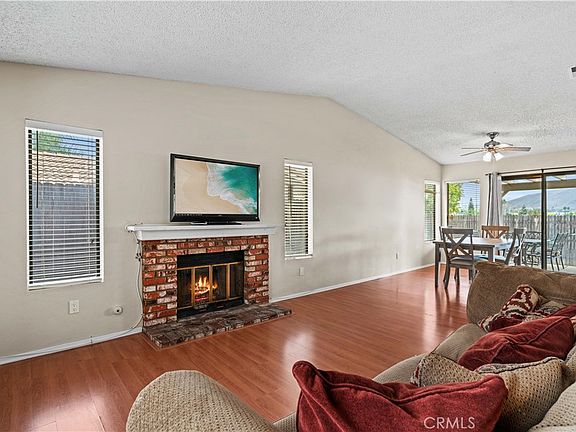 Move-in ready, a single-story SFR under $600K with great curb appeal in a beautiful neighborhood that exemplifies Prive of Ownership. This 2 Bedroom – 2 Bath home offers an open floorplan, custom paint and wood laminated flooring throughout. updated kitchen features white cabinetry, gorgeous granite countertops, stainless steel appliances and IS opened to the dining area. The living room has vaulted ceilings with skylights and a brick fireplace. Both bedrooms are large and have ceiling fans, and the primary bedroom has a sliding door to the backyard, 2 closets, and a private bathroom. Enjoy the fully fenced-in, private backyard with beautiful views of the foothills, and a built-in pergola to relax under. You will have 2-car garage with a full-size driveway and plenty of visitors parking spots in the community. It is conveniently located near schools, shopping and dining, and easy access to the 91 and 15 Freeways. A great, affordable starting home or an excellent home to retire into.