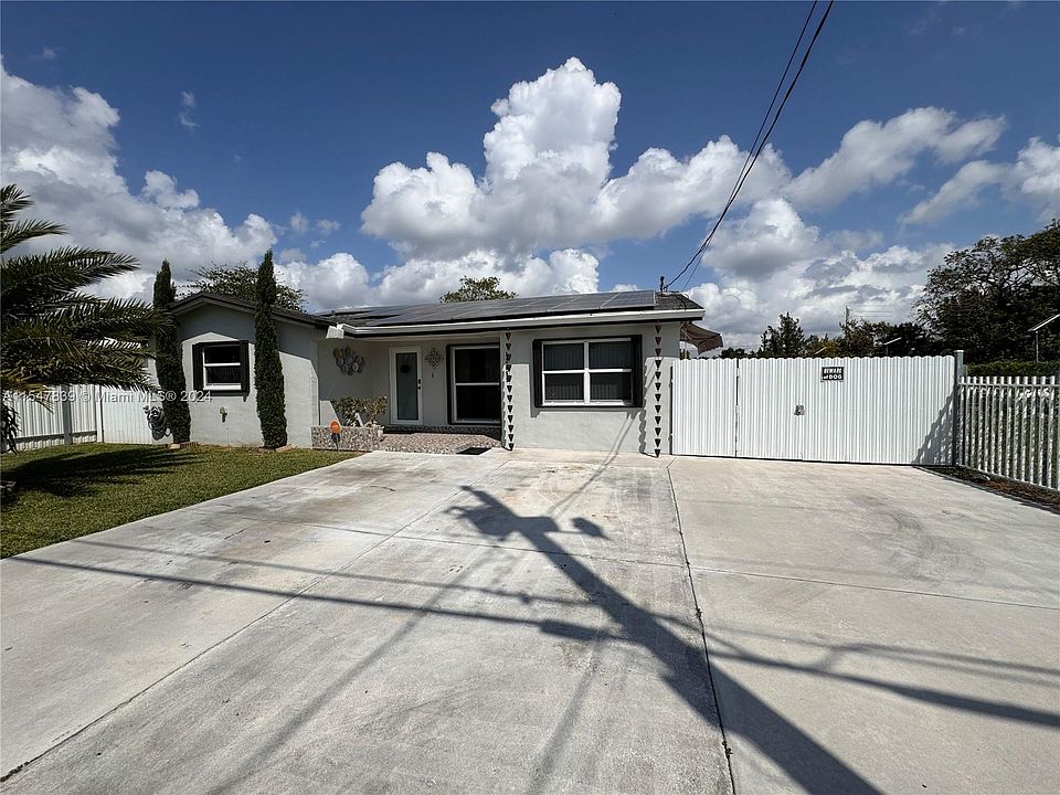 Move right into this beautiful, completely renovated 4 bedroom 3 bath home with the perfect backyard space! Features include a spacious living, dining and family room with ceramic tile, above ground pool, outdoor kitchen, solar panels, smart recess lighting, tastefully remodeled kitchen with beautiful countertops, wood cabinets and stainless steel appliances. Current owner pays $20 to $30 of electrical bill every month. (Solar Panels)
