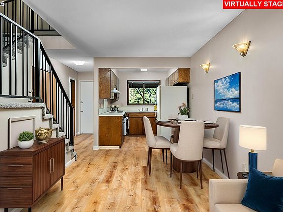 Jantzen Beach Village Condo With Resort Style Living on Hayden Island! Columbia Riverfront Amenities, Shopping, Cafes, Kayak & Boating All Within Minutes. Enjoy The Condo Community Filled With Extra Amenities Including 2 Pools, Gym, Sauna, Tennis & B-ball. This Fresh & Clean Townhouse Style 2 Bedroom Unit Offers a Welcoming Covered Front Porch Entrance & All New Interior Paint, LVP Wood Floors & Carpet. The Black Metal Stair Rail & Majestic Cone Fireplace Adds a Retro Touch, While The Interior Is Refreshed With Neutral Colors To Go With Any Style. The Living Room Opens To Kitchen & Dining Area & Has a Private Covered Patio. Primary Bedroom Features Big Double Closets & The Hall Bathroom Incudes Double Sinks With Tub. Build Equity Quickly By Updating Kitchen/Baths. Quality Solid Wood Cabinetry For Easy Painting. New HVAC System Was Installed In 2023. HOA Includes Water/Sewer, Trash, Ext Maintenance & All Landscaping For Stress Free Living. Easy access to I-5 & Hwy 14 Making Downtown Portland, The Vancouver Waterfront & Portland International Airport Very Accessible. No Rental Cap.