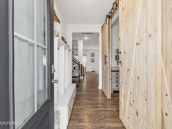 Elegant Design Details: Admire the barn doors and upgraded paint that add a touch of sophistication.